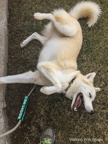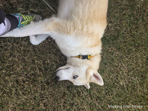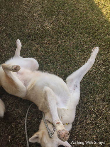 It was during our time at the pup den that Vinny decided to displayed his goofy side . . . he started rolling around on his back in the grass, long legs outstretched towards the sky.