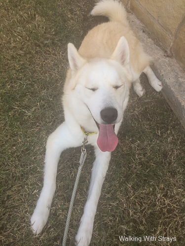 As we were heading towards the exit to begin our walk, the attendant told me that this would be Vinny’s 1st walk outside the shelter walls.